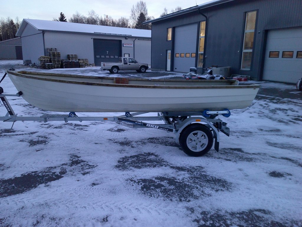 Artekno Airisto 4,70 x 1,50 m Kort rigg. Passlig motor 10-20 hk. Mycket sakligt skick.